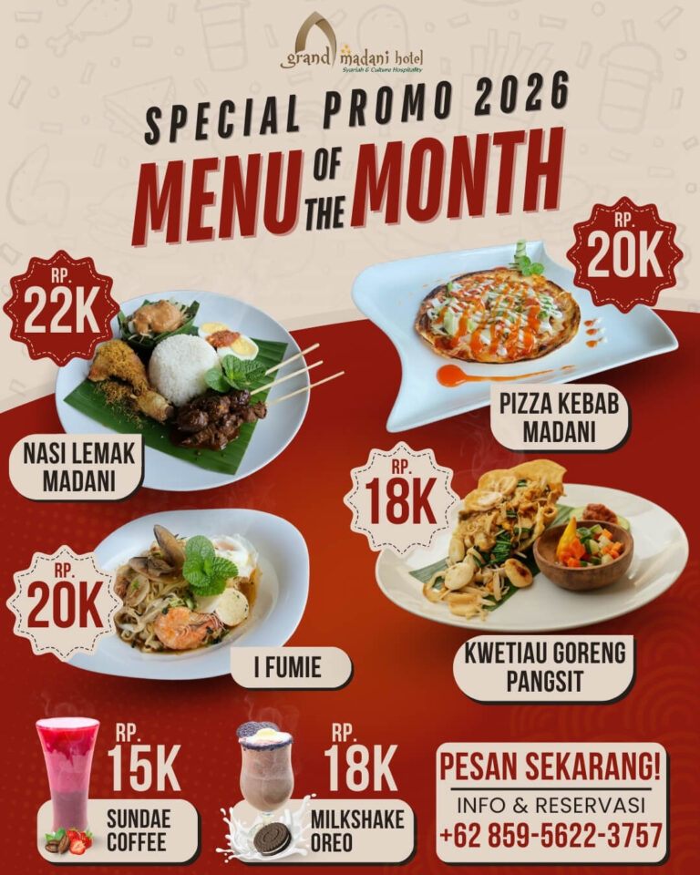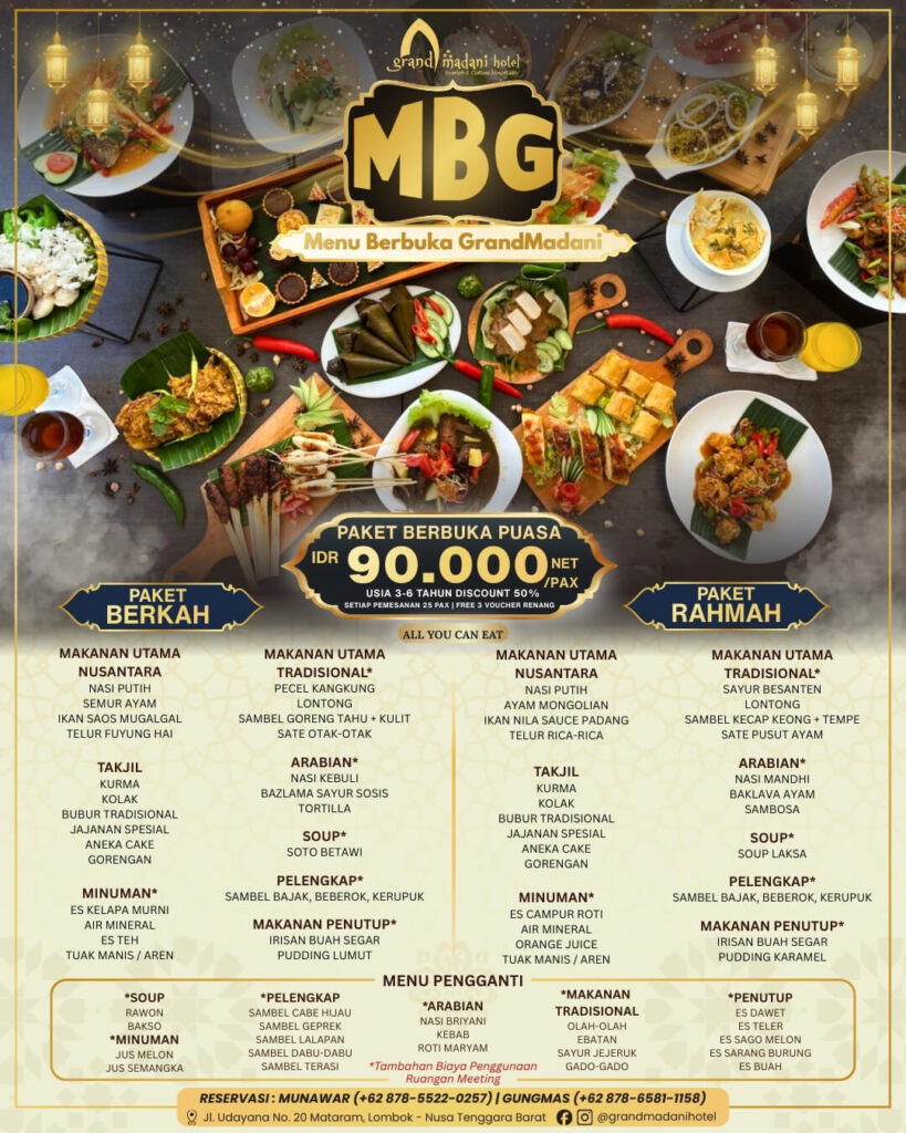 Ideally located in a strategic area, close to renowned universities, the government center of Mataram City, Udayana Park, and the iconic Islamic Center Mataram Hubbul Wathan Grand Mosque. Grand Madani Hotel & Convention offers 59 luxurious modern rooms designed for your ultimate comfort. Featuring a spacious ballroom with big screen videtron and 4 versatile meeting rooms, we are ready to cater to your every need from exceptional business gatherings to unforgettable leisure experiences in Lombok.
