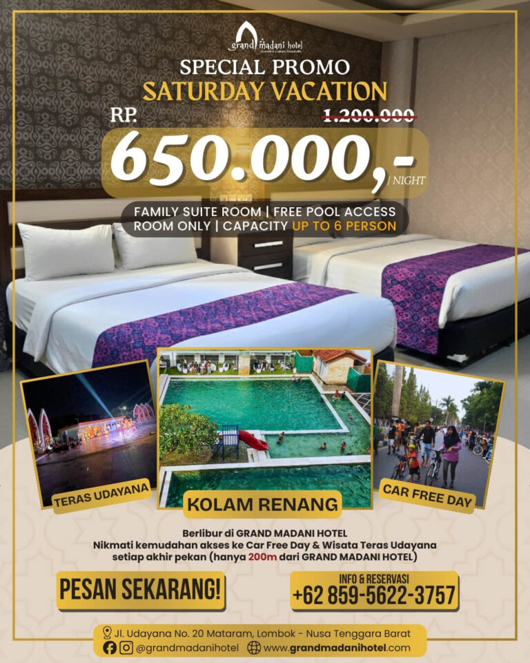 Best Value! Experience a memorable stay in the heart of Mataram along Saturday Night with Family for only IDR 650,000/nett/night. Family Suite Room with capacity up to 6 person, room only and free pool access.
